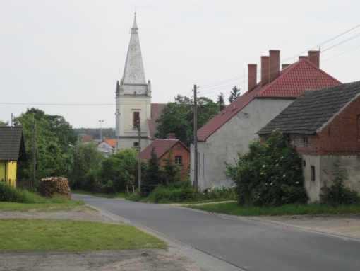 Strasse von Karge aus mit Blick auf die evangelische Kirche